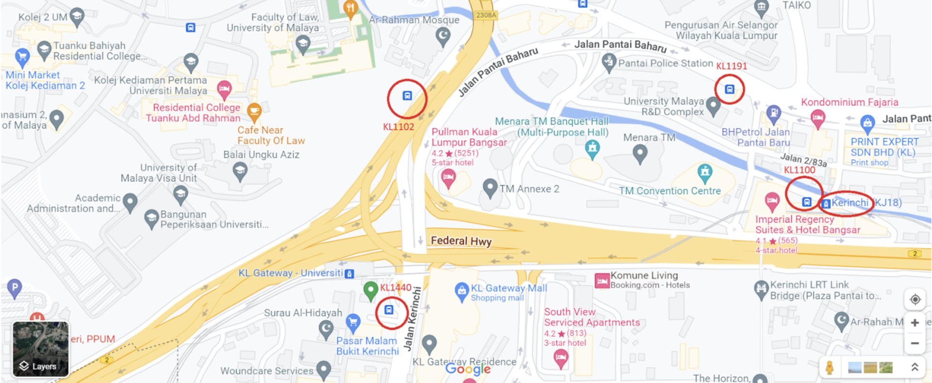 KL1102 Masjid Arrahman UM      Google Link       750, 751, 772, 780, T789      11 mins
